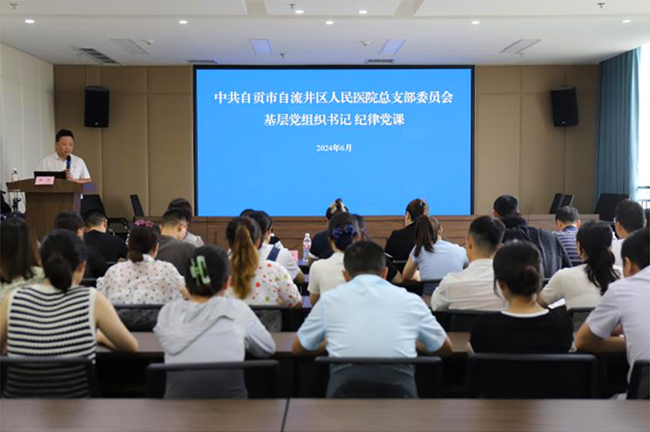 为深入学习贯彻习近平总书记关于加强党的纪律建设的重要论述,持续推动党纪学习教育走深走实,6月26日,自贡市自流井区人民医院党总支书记陈凯召开了基层党组织书记讲纪律党课,区委党纪学习教育专班领导及区卫生健康局党委委员、副局长李薇列席党课。