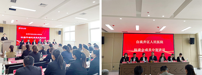 11月18日下午14:30在自流井区人民医院多功能会议室召开了中层干部就职大会,区人民医院院务委员会成员,各分院副院长,中层干部,区人民医院及各分院职工代表出席会议,院务会成员殷文娣主持会议。