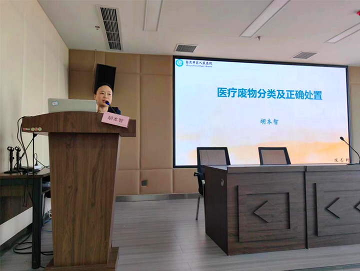 胡老师结合临床工作经验及事件分享,深入浅出的就为什么要进行规范化处理医疗废物进行重点强调,要求大家掌握基本的医疗废物分类,就医院的医疗废物收集、储存、转运过程进行详细讲解。