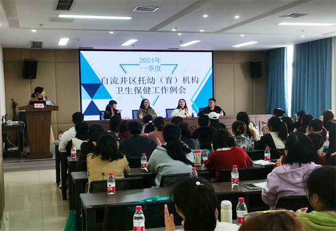 3月14日下午,在自流井区人民医院召开了2024年一季度自流井区托幼(育)机构卫生保健工作例会。区卫健局党委委员、副局长李薇、高新区社事局干事邹建波、区教体局干事何学贤、区人民医院院务会成员张红梅出席会议,区人民医院儿童保健指导中心主任廖曦主持会议。全区(含高新区)80余家托幼(育)机构负责人及保健人员共108人参会。