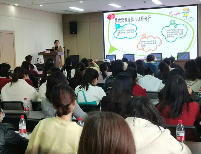 最后,区人民医院组织专家就《幼儿园营养膳食与计算分析》开展了专题培训。通过培训使辖区保健老师对幼儿营养膳食有了更深入地了解,掌握了营养食谱的制定和计算的技能,对提高在园儿童的膳食营养水平有重要意义。