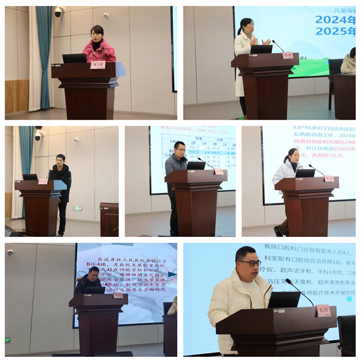 大会上,首先由内大科、骨科、外科等7个临床科室负责人代表分别从科室管理、业务情况、服务提升等方面,通过量化数据、图片展示等多种形式进行述职总结。