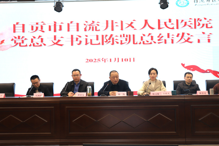 最后,党总支书记陈凯作总结讲话,他指出:2024年,区人民医院在区委、区政府及区卫生健康局党委的坚强领导下,深入贯彻落实党的二十大及二十届三中全会精神,以推动公立医院高质量发展为重点,积极开展党建引领、医院管理、医疗能力提升、新业务新技术开展、医院文化建设、人才培养等工作,全院干部职工踔厉奋发、勇毅前行、团结拼搏、开拓进取,圆满完成了各项工作任务。他号召:全体职工在新的一年里继续坚定不移地秉持 “以人为本、患者至上、优质服务、精益求精”的服务理念,持续不断地提升医疗品质。随后,陈凯书记对全体职工进行廉洁教育暨节前集体廉政谈话,并通报了自流井区卫生健康系统违法违纪典型案例。