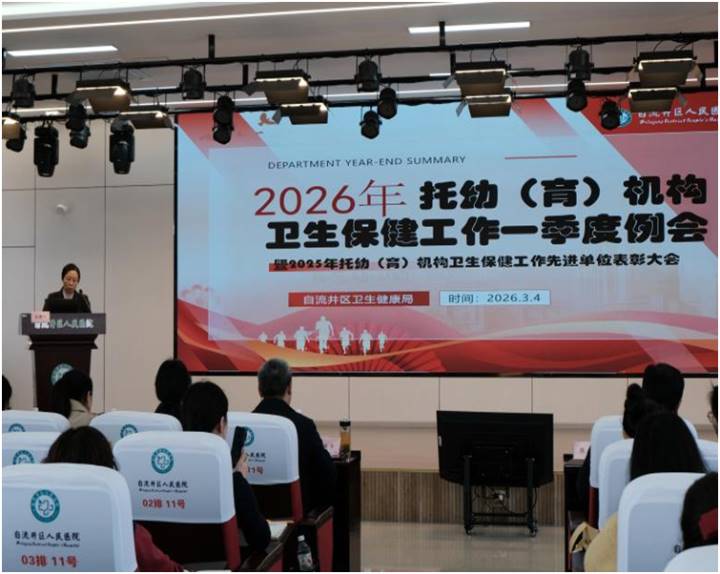 为全面总结2025年全区托幼(育)服务工作成效,表扬先进典型,精准部署2026年重点任务,持续提升辖区托幼(育)机构规范化管理水平与卫生保健服务能力,3月4日,自流井区2026年度托幼(育)机构卫生保健工作一季度例会在区人民医院8楼多功能厅顺利召开。