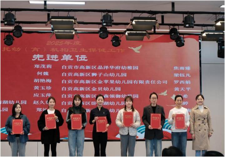会议由自流井区人民医院儿保指导中心主任廖曦主持。会上通报了2025年卫生保健工作督导和卫生评价总体情况,宣读先进表扬决定,并对2026年上半年重点工作进行部署。与会领导为受表彰的先进集体和先进个人现场颁奖,充分肯定了各机构在卫生保健工作中取得的成绩。